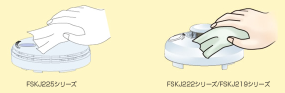ホコリを吹き飛ばしたり、払い飛ばすと煙感知部の内部にホコリが入り、誤動作のほか、正常に火災を感知できなくなるおそれがあります。