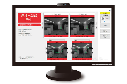 画像処理装置が煙を検出すると 監視用パソコンの画面は