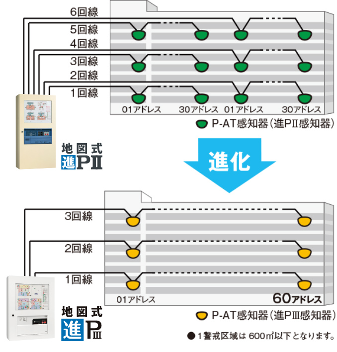 1回線にP-AT感知器(進PⅢ感知器※1)が60個接続可能