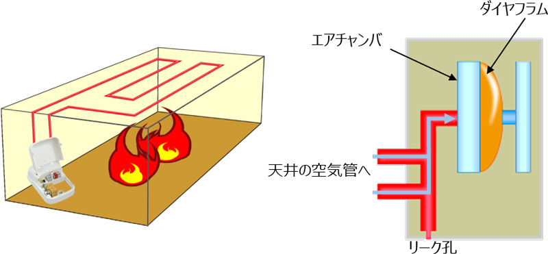 火災による周囲温度の上昇をとらえ、火災を感知するもの。